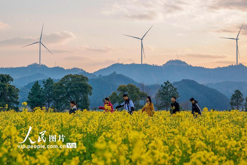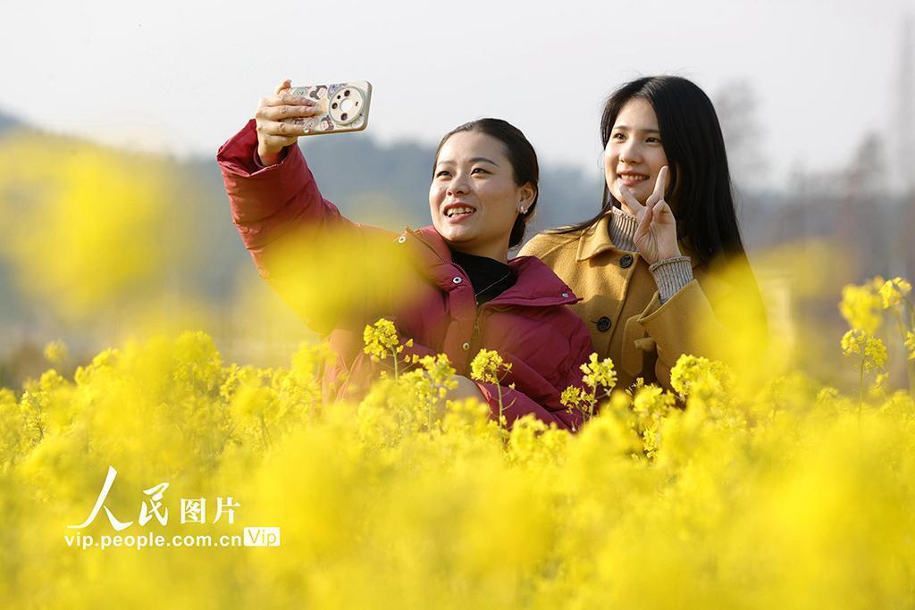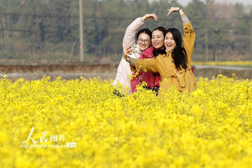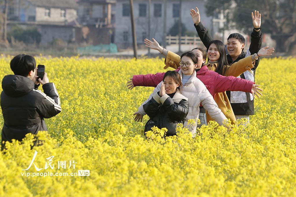 眼下,江西省吉安市峡江县金江乡的油菜花绽放,吸引游客纷至沓来。陈福平摄(人民图片网)